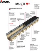 Das Entwässerungssystem Multi V+ ist in den Breiten 100, 150 und 200 mm und in mehreren Höhen bis zur Belastungsklasse E600 erhältlich. Außerdem gibt es diverse Gefälletypen: Wasserspiegelgefälle, Stufengefälle, 0,5% Eigengefälle und Mischgefälle.