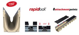 Die Rapidlock®-Sicherungsarretierung ist ein schraubenloses Befestigungssystem mit dem der Rost schnell, sicher und mühelos mit einem einzigen Klick am Rinnenkörper befestigt werden kann.