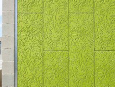 Diese Fassade sticht wegen der Plattenzeichnung in Form eines Weinblatts und Flachreliefs sowie der Einbindung in die jeweilige Umgebung hervor. Der Eindruck ist der eines kontinuierlichen Wandteppichs auf der Fassade.