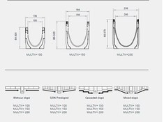 The Multi V+ drainage system is available in widths of 100 mm, 150 mm and 200 mm and in multiple heights, up to a D400 load type. You can also choose 0.5% presloped or a cascaded slope.
