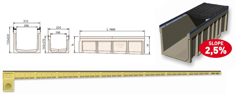 The first Polymer Concrete channel with built-in 2.5% slope.