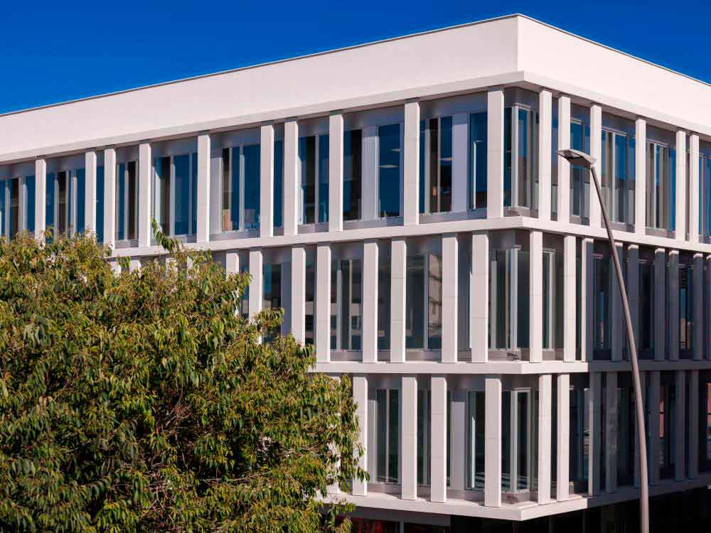 Engineered stone panels were supplied by ULMA for the facade of the Banca March building in Mallorca. The building's façade was surrounded by pillars that the architects wanted to cover to achieve a much more aesthetically pleasing facade. For this, ULMA designed and manufactured special panels adapting to the needs of the building.