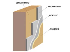 Sin embargo, en el SATE el aislamiento queda totalmente cubierto con varias capas de material, creándose un revestimiento sólido que actúa a modo de abrigo para el edificio.