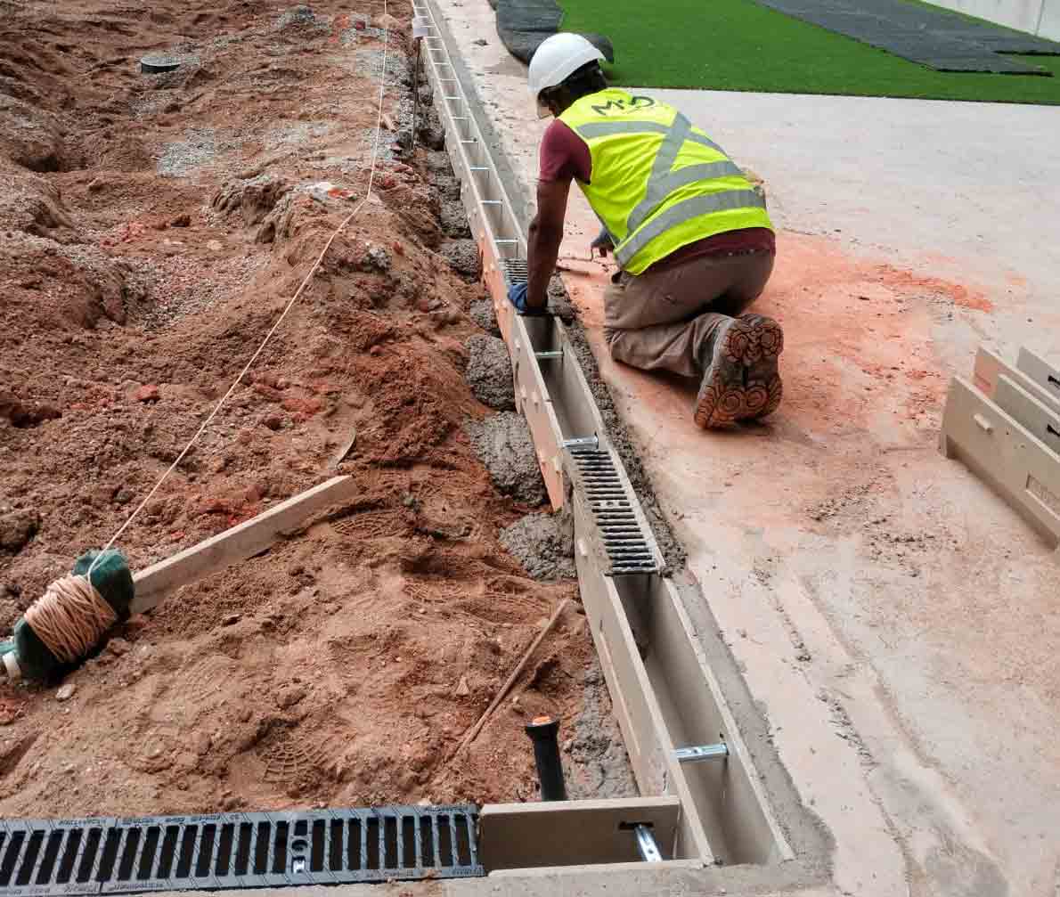 El colado en sitio depende de la mano de obra, el clima y las condiciones en campo, lo que puede generar pendientes incorrectas, acabados deficientes o fallas en la alineación. En cambio, los canales de drenaje prefabricados garantizan dimensiones precisas y un desempeño constante.