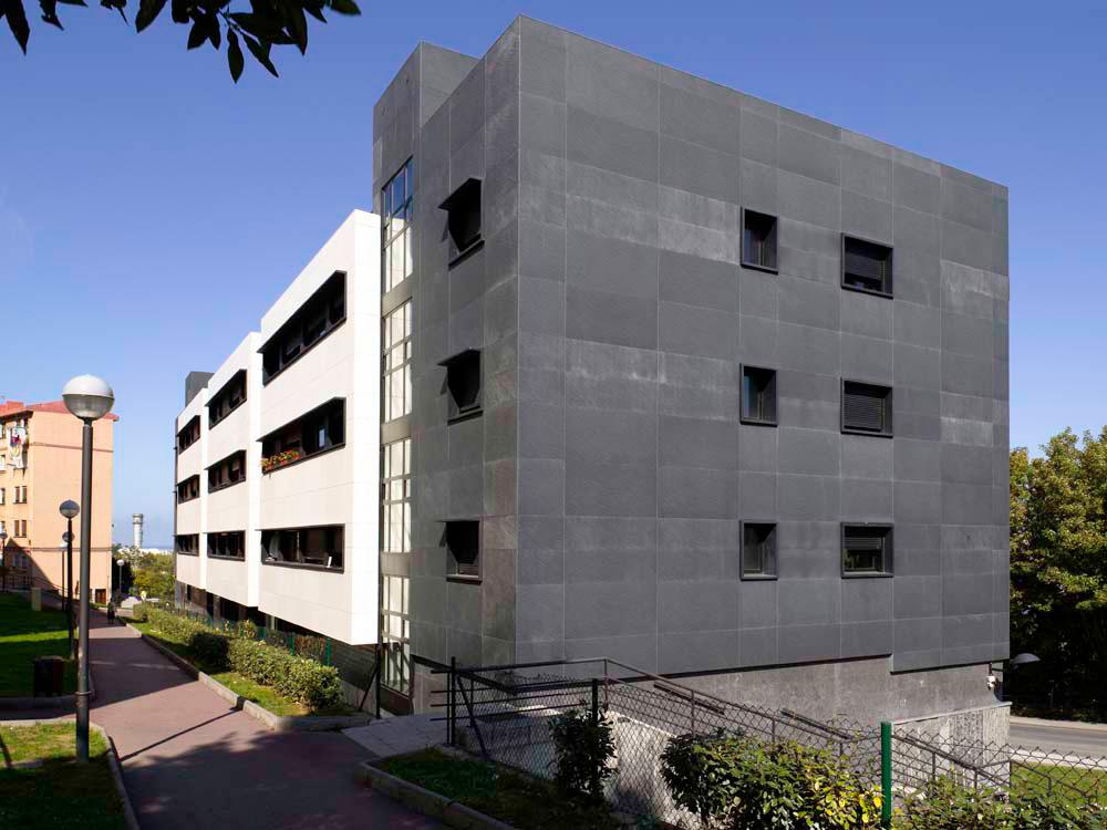 Emilio Medina arkitektuak ULMAren Fatxada Aireztatu sistemaren alde eginez proiektatu du eraikina.
