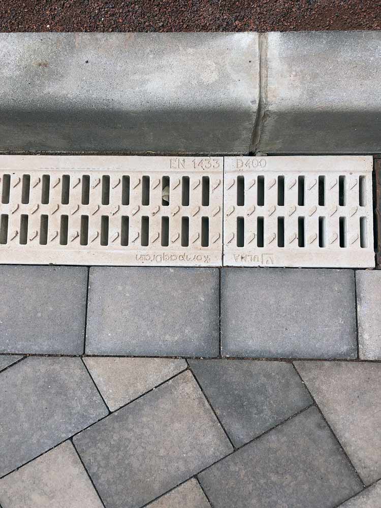 Voilà donc la raison pour laquelle nous avons installé des caniveaux monolithiques Kompaqdrain, composés d’une seule pièce qui intègre à la fois le caniveau proprement dit et la grille. En outre, le modèle CITY (le modèle qui a été utilisé dans ce projet) présente une caractéristique qui convient tout particulièrement aux zones piétonnes : son caillebotis est doté d’orifices de captage PMR afin d’éviter tout risque de trébuchement ou de chute.