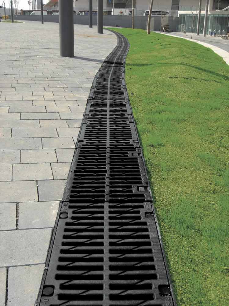 Les caniveaux à pente incorporée sont les seuls sur le marché avec une pente effective de 2,5 %. Grâce à cette inclinaison marquée, ils offrent une capacité hydraulique supérieure et permettent de surmonter les limitations dues au dénivelé de certains terrains.
