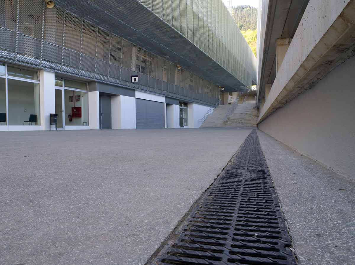 Les caniveaux à installer devaient être à même de supporter la circulation de véhicules car il y a, dans la zone technique du stade Ipurua, des véhicules de maintenance qui ne cessent de passer par-dessus les caniveaux de drainage. Pour satisfaire cette exigence, nous avons donc fourni des caniveaux techniques MultiV+200 fabriqués en béton polymère, adaptés à une charge allant jusqu’à D400.