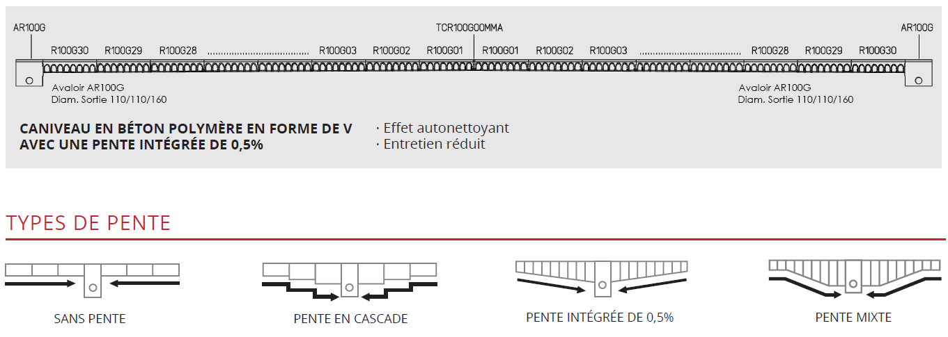 Caniveaux préfabriqués à pente intégrée pour maximiser la performance hydraulique