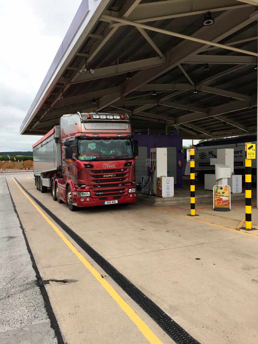Nesta cidade ao norte de Londres melhoramos o sistema de drenagem deste estacionamento para caminhões e posto de gasolina.
