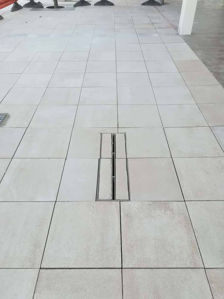 Uma das premissas quando se trata de abordar o projeto era que, por tratar-se de um espaço de pedestres, o sistema de canalização deveria estar oculto. Nossa grelha ranhurada foi a solução, porque oferece melhorias estéticas apreciáveis, e faz com que o sistema de captação de águas da chuva não seja notado e não afete o design estético previsto para os pavimentos. Tudo isso sem sacrificar a capacidade hidráulica do sistema.